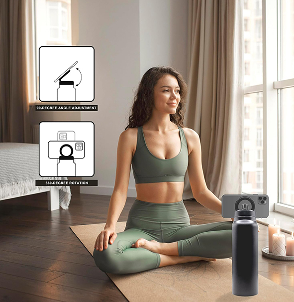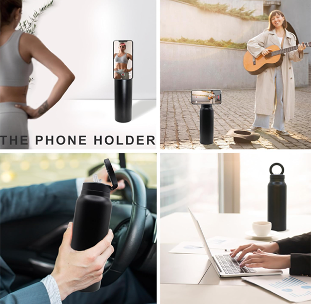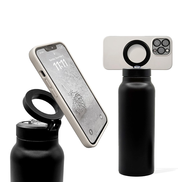 Այս թերմո շշի բռնակը ծառայում է որպես հեռախոսի մագնիսե հենակ, որը համատեղելի է MagSafe-ի, iPhone 12 և ավելի բարձր մոդելների հետ։